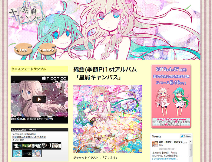 星屑キャンバス - 綿飴(季節P)1stアルバム特設サイト【公開終了】
